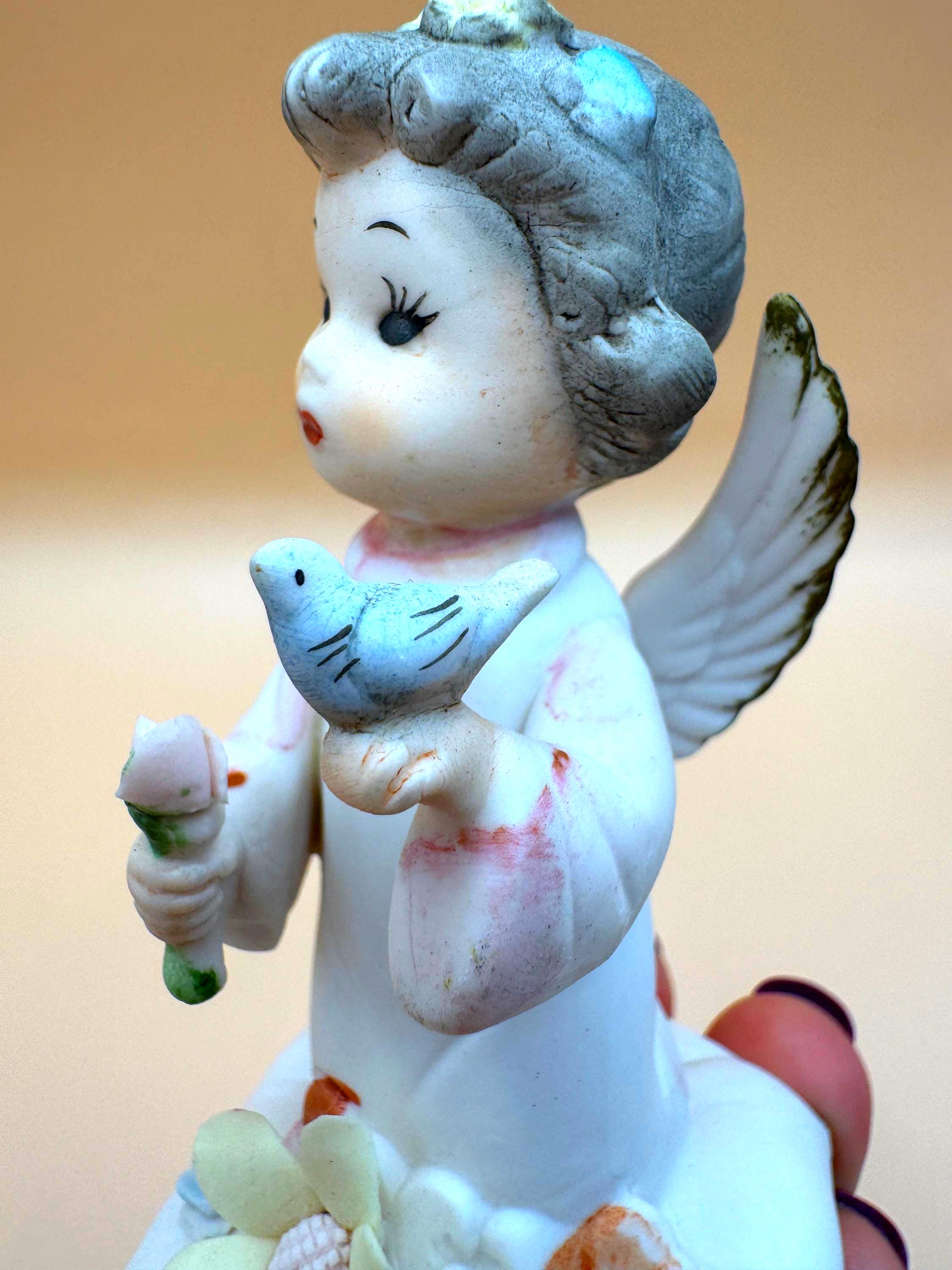 Perfect for nursery shelves, spring displays, or as a thoughtful vintage gift for an angel or bird lover.
